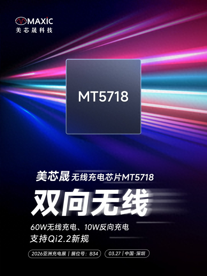 与此同时,美芯晟将于2026年3月27日亮相深圳“2026亚洲充电展”,并在B34展位现场展示MT5718的实际表现与应用,欢迎大家莅临交流,共同研讨。